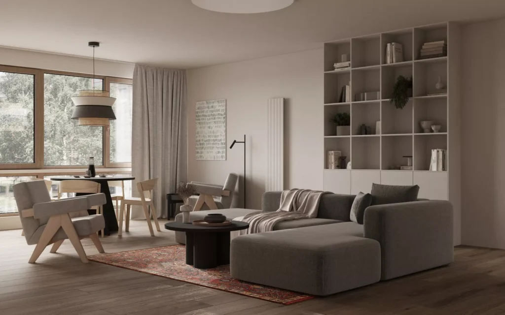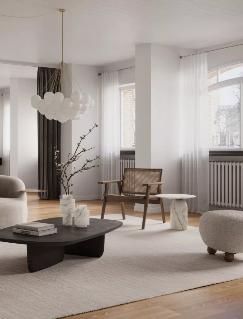 You’ll see examples of this everywhere, like plush low-profile sofas, organic lighting made from rice paper or rattan, beautifully textured rugs, and simple art pieces with abstract shapes. It’s truly a masterclass in elegant simplicity.