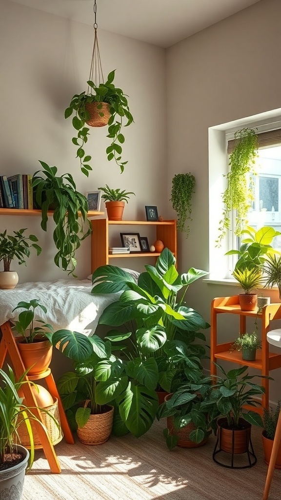 Consider placing plants on shelves or using hanging pots to maximize space. This setup keeps the floor clear while still allowing for a lush environment. Plus, plants like pothos and snake plants are low-maintenance, perfect for busy students.