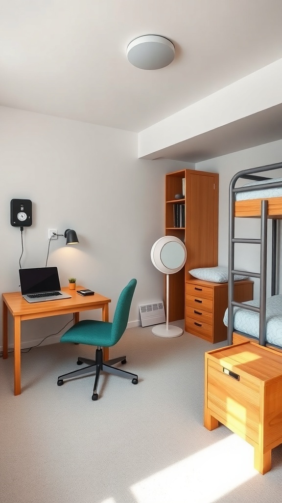 Lighting is another tech aspect to consider. The desk lamp not only provides focused light for studying but also adds a stylish touch to the room. Good lighting can improve mood and productivity, making it essential in a shared space.